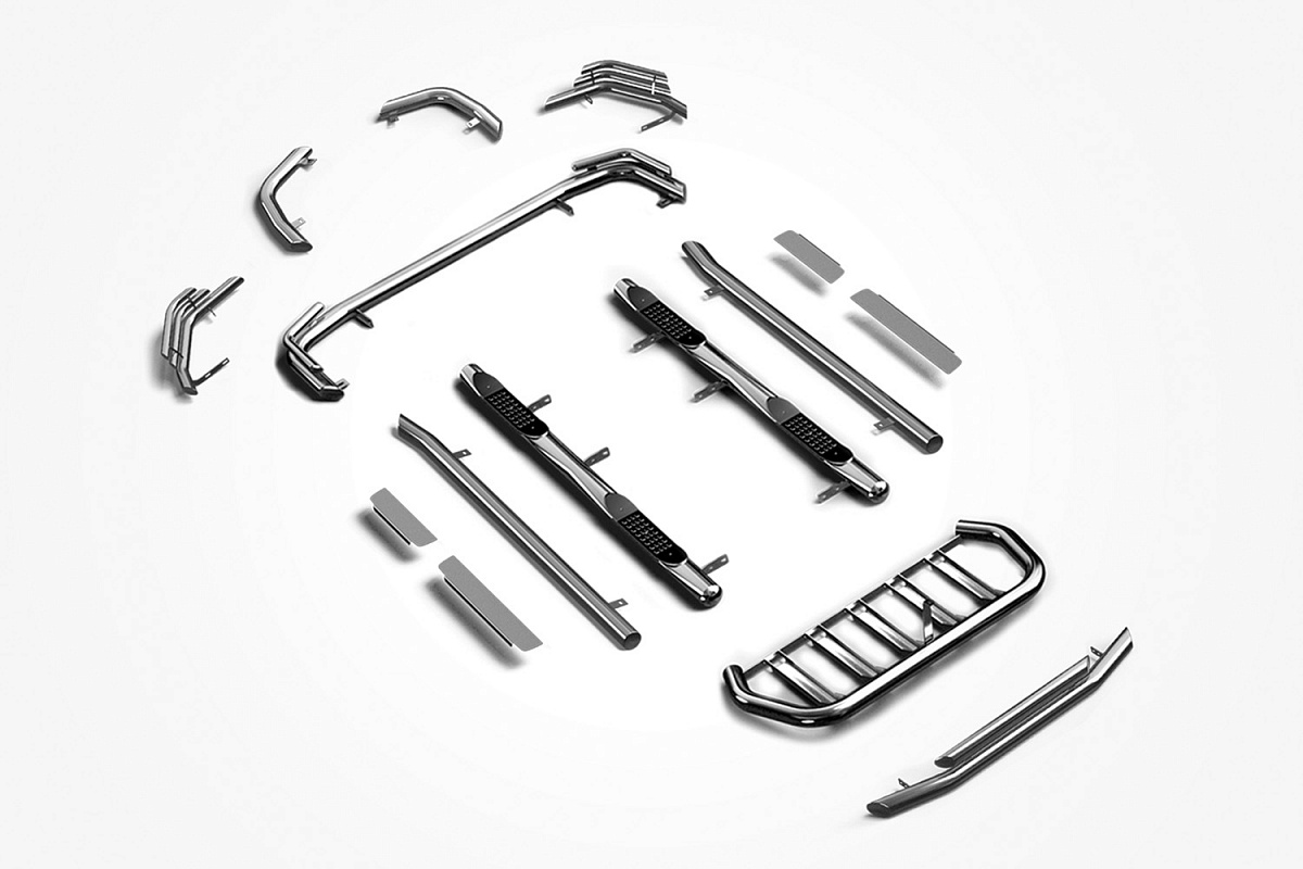 Stainless steel decorative accessories are a way to express yourself, to transform your car, to make it stand out among others. By combining the various options of front and back protection as well as sills you can choose your own unique style. Also, Stainless steel decorative accessories are not only an addition to the car's exterior, often it is also a practical and functional product. You can select both ornamental sills and sills that can be used to facilitate entry into the vehicle.