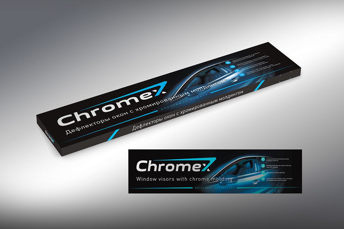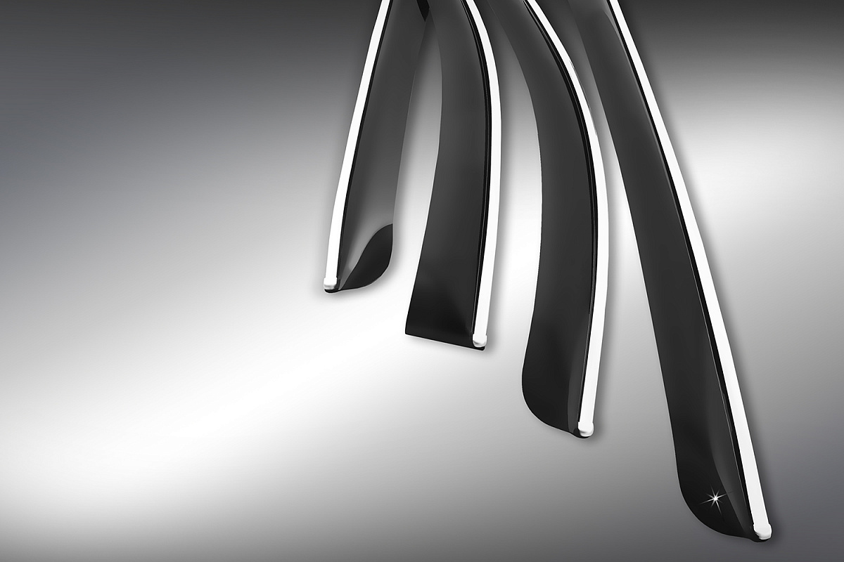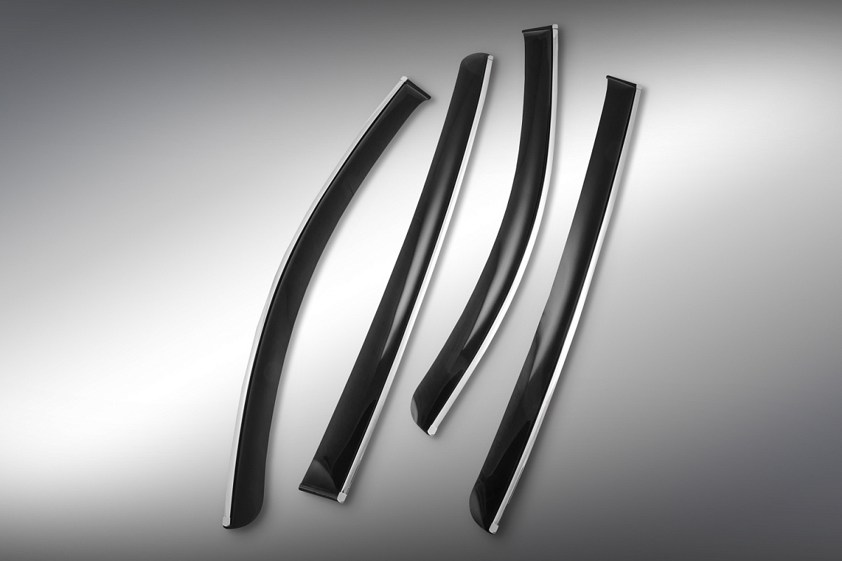 Window canards with Chromex chrome-plated molding are ideally combined with the standard molding on the car body, and also protect the interior from dirt, dust, rain, snow and provide comfortable conditions when ventilating the interior. Chromex canards are made from certified materials that are resistant to UV radiation, salts, reagents and temperature extremes. Each set includes detailed installation instructions, as well as two alcohol wipes and an absorbent cloth with an adhesion promoting agent for reliable operation of the product. Chromex window canards are carefully packed in stretch film, and then in a plastic sleeve and a bright colored individual box.