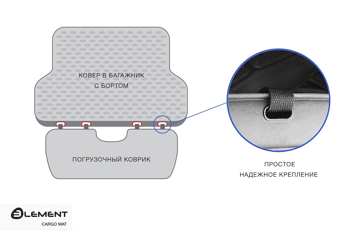 The process of mats designing takes place using modern equipment and digital technology. At each stage of development and production strict quality control is carried out. Thanks to this, ELEMENT floor mats ideally repeat the geometry of the car floor, which provides reliable protection against dirt and traffic safety. Traffic safety is also ensured by accurate fixing mats to the floor of the car with the help of standard fasteners. Mat surface has anti-slip effect.
