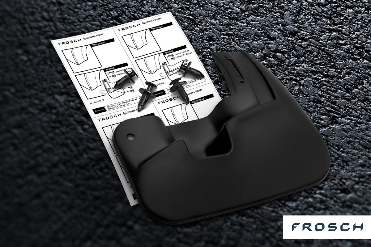 FROSCH mud flaps not only allow you to protect the car from sand, mud and small stones flying from under the wheels, therefore making the driving process safer for all road users, but also can serve as a stylish accessory that complements the car silhouette. Thoroughly calculated geometry, original mounting hardware and detailed instructions allow you not to waste any time during the installation process. Moreover FROSCH mud flaps will stay flexible under harsh conditions including up to -50 °C frost due to the European materials and production technologies.