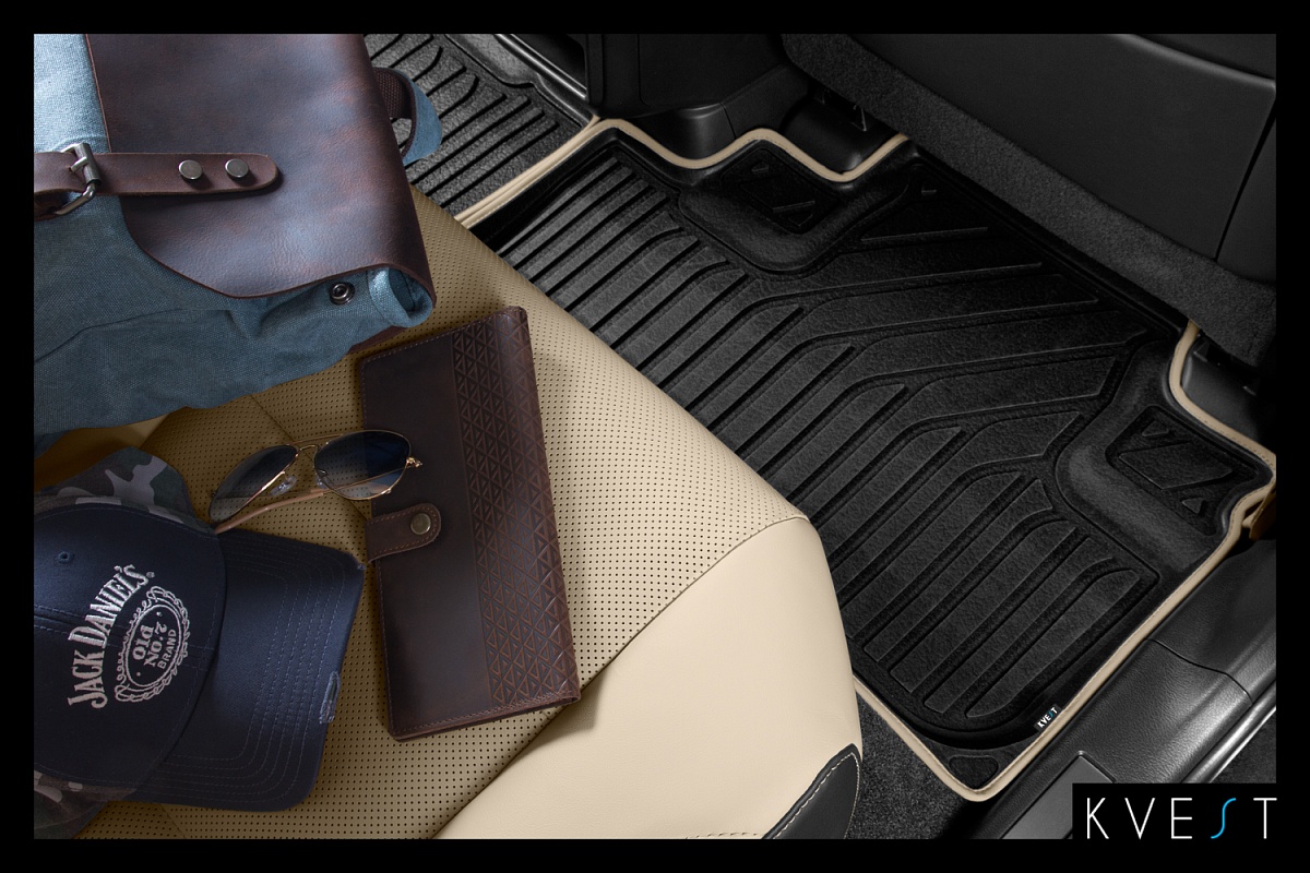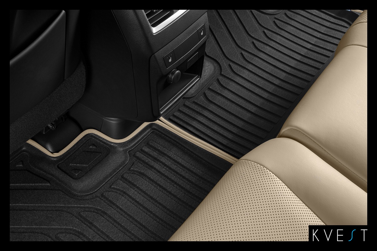 KVEST Floor Mats are made from an innovative rubber-like material which forms grainy surface to prevent shifting. Workable design and nubuck edging band emphasize product exclusivity.